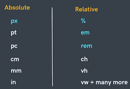 Note :- We have studied absolute unit (PX) in previous html chapter in this we will talk about relative units.